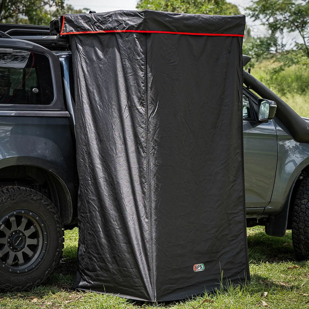 The EFS camping shower or ensuite is an awning that mounts to the side of your 4WD. Discover the versatility and convenience of the EFS Ya’Mate ensuite shower awning tent – a compact yet spacious tent solution for showering, toileting, and dressing on the go.